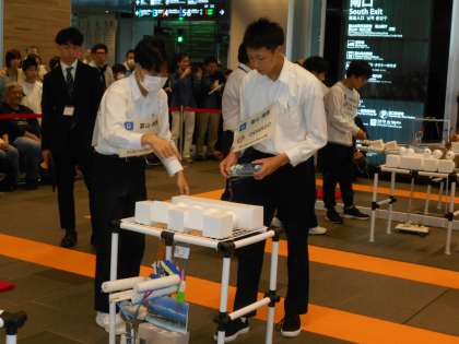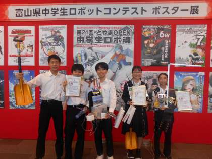 富山県中学生ロボットコンテスト 公開日 2024/10/28 更新日 2024/10/28 南中NEWS 10月27日(日)富山駅コンコースで行われた富山県中学生ロボットコンテストにて、3年生2チームが参加しました。「豪雪!富山の冬は雪下ろし」のテーマのもと、ロボットを使い、雪(発泡スチロール)を運ぶ競技でした。夏休み前からアイディアを出し、ODANGO(男子チーム)が、審査員奨励賞をいただき、チーム冬はつとめて(女子チーム)は、トーナメント優勝とロボコン大賞をいただきました。