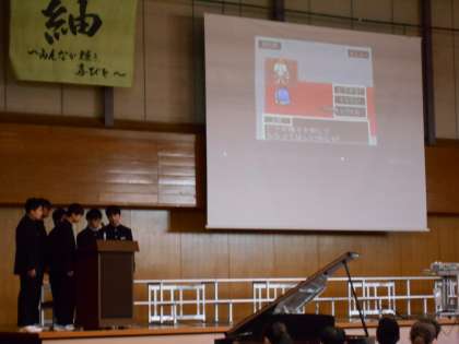「紬(つむぐ)〜みんなが輝き、喜びを!〜」のスローガンのもと、今年度の文化活動発表会が実施されました。これまで、各学級での合唱練習や、各教科や文化部の部員が制作した作品等の取組の成果を披露する日となりました。