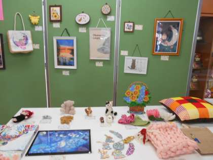 部活動で作った作品を展示しました。どの作品も丁寧で、美しい仕上がりになりました。