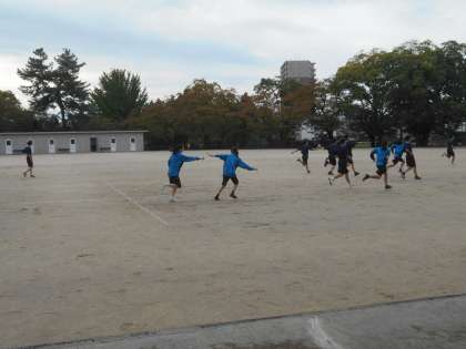 保健体育は、リレーのバトンパスの練習をしています。