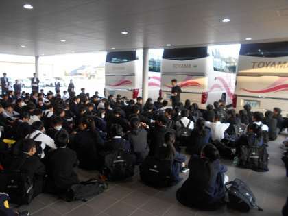 午前7時35分、金沢での校外学習に向けて2年生が出発しました。