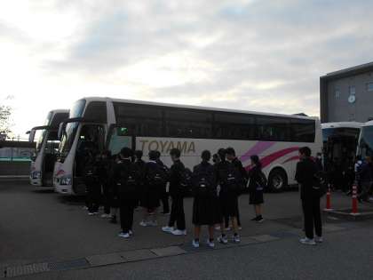 午前7時35分、金沢での校外学習に向けて2年生が出発しました。