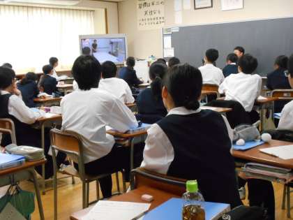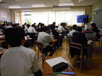 進路学習の一環として職場体験に関するDVDを視聴しました。職場体験する様子から、思い描いていた働くということと現実との違いを感じていたようです。
