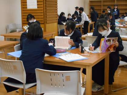 1組から3組は、働く目的のダイアモンドランキングをもとに興味ある職業について、図書室の本やクロムブックで職業調べを行いました。学校司書に相談しながら本を選ぶ姿が見られました。