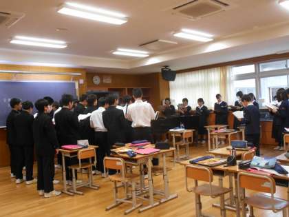 音楽、英語の様子です。音楽は、「夢の世界を」の合唱中でした。
