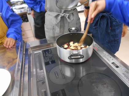 技術・家庭科(家庭分野)は、大学芋の料理実習をしていました。