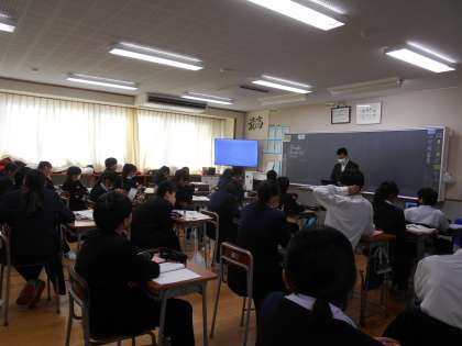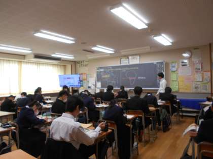 社会、数学、英語の様子です。数学は、条件に合った作図の学習で、教え合う姿も見られました。