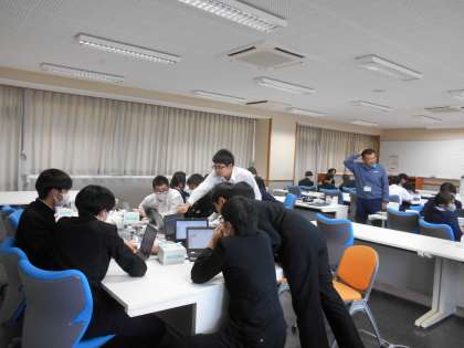 道徳、社会、技術・家庭(技術分野)の様子です。技術は、プログラミング学習教材を使って、グループごとに、どのようなイルミネーションを作るかを相談しています。