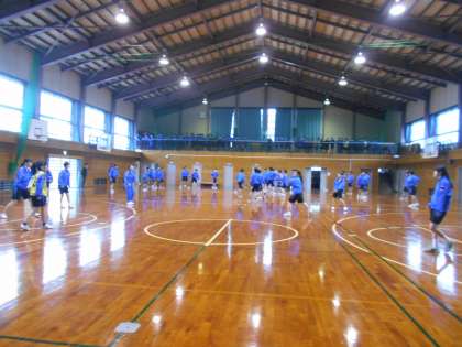 試合前に円陣を組んだり、互いに応援し合ったりして盛り上がっていました。
