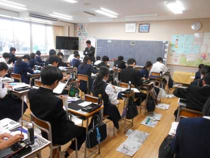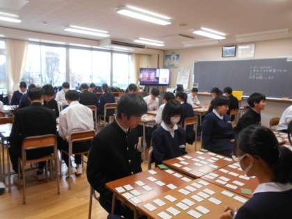 2クラスとも国語の様子です。書き初め練習に、百人一首練習と、季節を感じます。