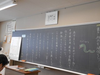3学期が始まりました。担任からのメッセージで生徒を迎えました。