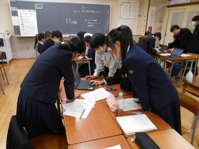 総合的な学習の時間では、今回から来年度の修学旅行に向けての学習が始まりました。訪れる関西についての6つの学習テーマの中から各班一つ決め、協力して調べていました。