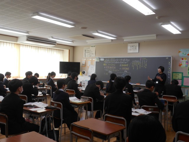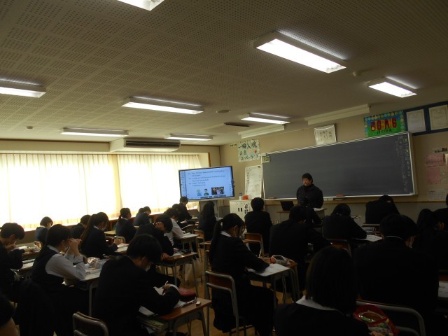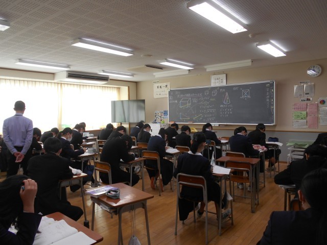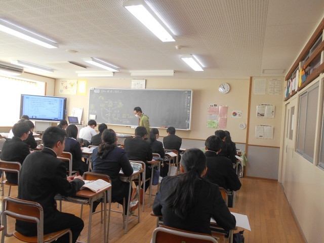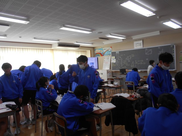 1月16日(木) 3学年授業の様子 公開日 2025/01/16 更新日 2025/01/16 3年生 英語は音読練習、理科は生物と環境の関係について学習中でした。数学は、2クラスとも三平方の定理の利用問題を教え合ったり、自力でがんばったりして解いていました。社会は、社会の変化と日本の経済について学習中でした。 +2