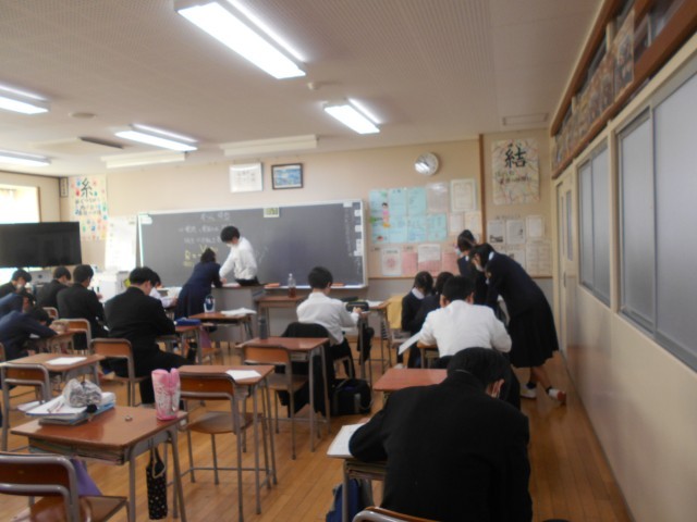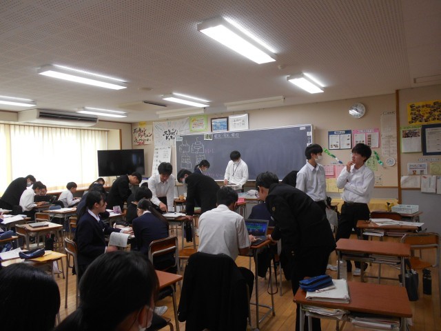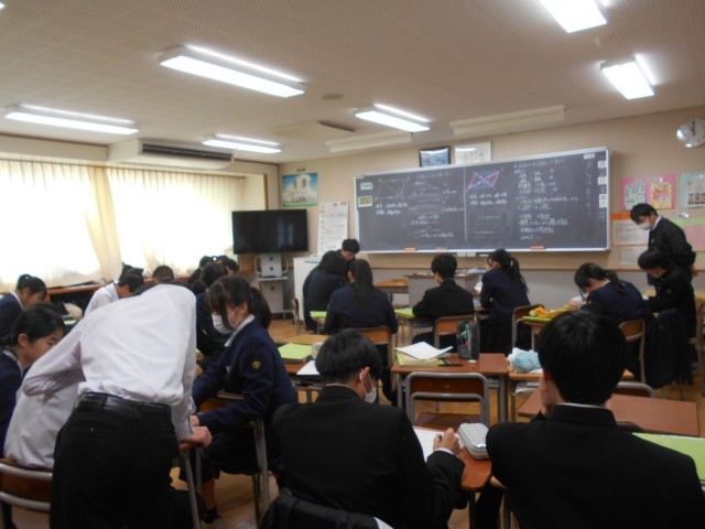 1月24日(金) 2学年授業の様子 公開日 2025/01/24 更新日 2025/01/24 2年生 写真は順に、数学、理科、数学、理科、英語の様子です。数学は、平行四辺形についての証明問題等の学習です。理科は、オームの法則に関する問題に取り組んでいます。数学も理科も、必要に応じて教え合って何とか解決しようと一生懸命です。英語は、比較表限をまとめています。 +2