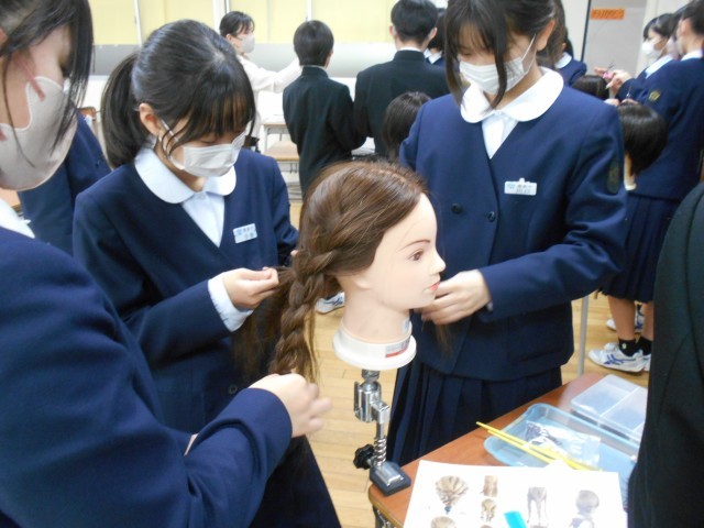 中 「美容師」の方から、ヘアカットの仕方について学んでいます。