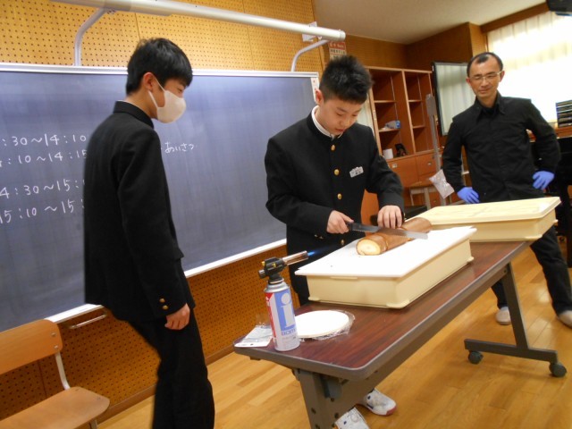 中 「パティシエ」の方から、ケーキ作りについて学んでいます。
