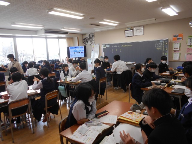 1月28日(火) 1学年授業の様子 公開日 2025/01/28 更新日 2025/01/28 1年生 理科は地震が起こるしくみについて、技術・家庭(家庭分野)は消費者が商品を購入する意思決定のプロセスについて学習していました。音楽は、雅楽に用いられる楽器の音色を聴いていました。国語は「『不便』の価値を見つめ直す」という説明的文章、数学はいろいろな立体の体積や表面積について学習していました。 +2
