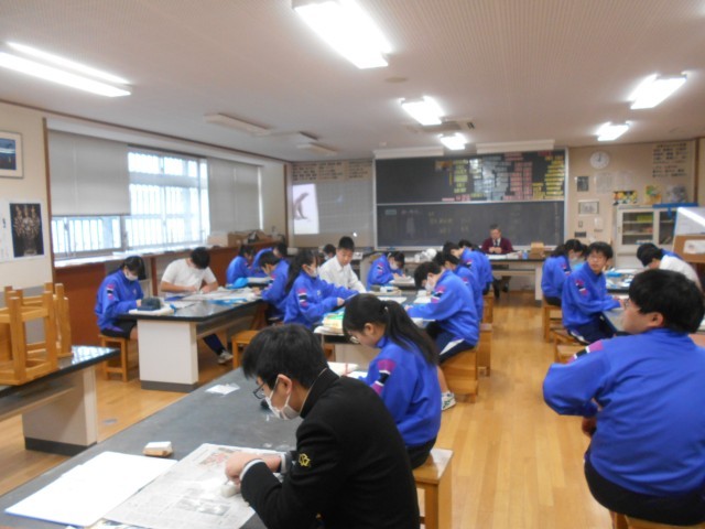 2月4日(火) 3学年授業の様子 公開日 2025/02/04 更新日 2025/02/04 3年生 数学、国語、社会は、問題演習中です。美術はてん刻、体育は卓球とバドミントンに分かれて行うところです。 +2