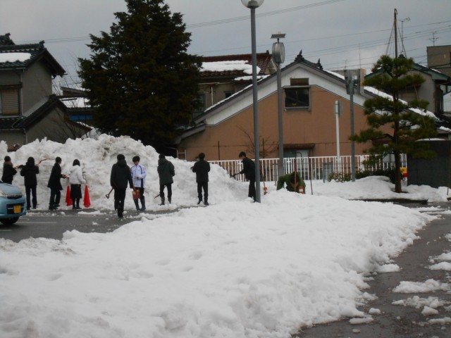 先週の大雪で、駐車場に大きな雪山ができています。除雪活動や挨拶運動などの生徒たちの活動は、私たちをさわやかな気持ちにさせてくれます。
