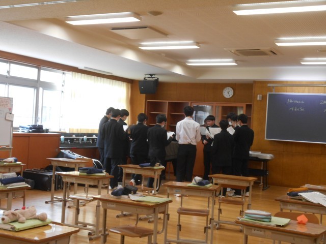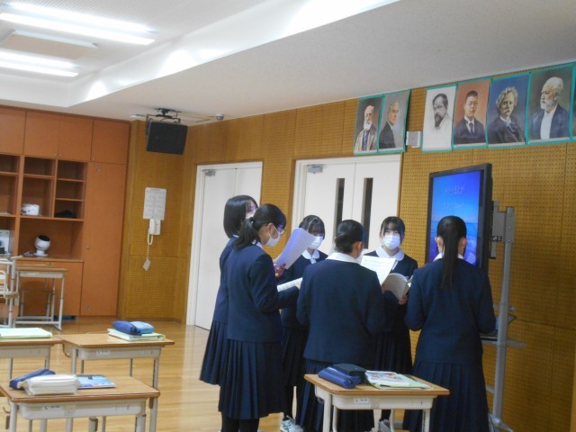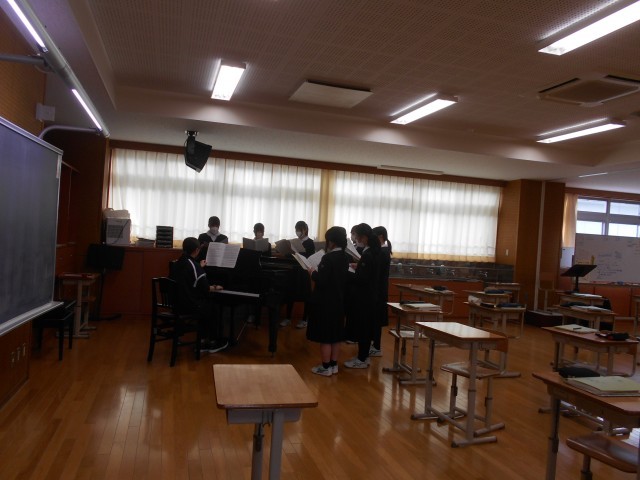 音楽の様子です。卒業式で歌う曲の練習が始まっています。
