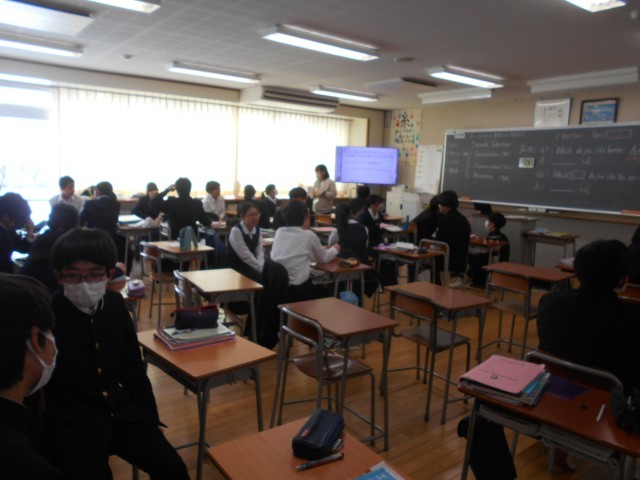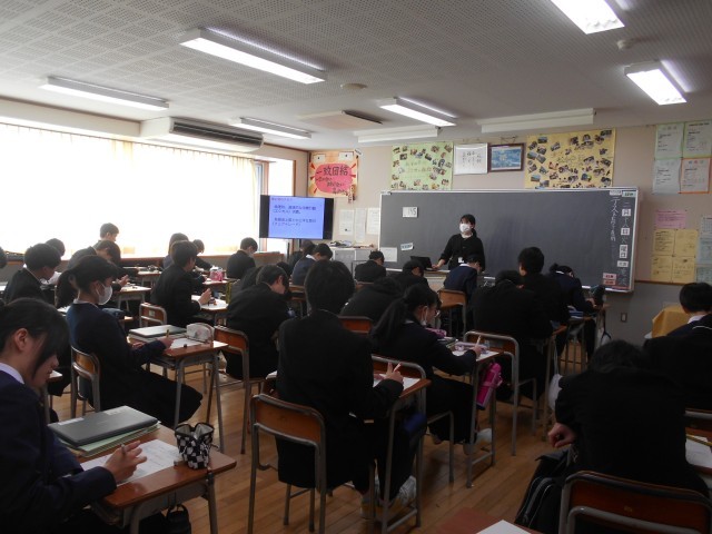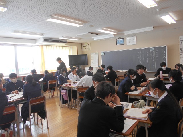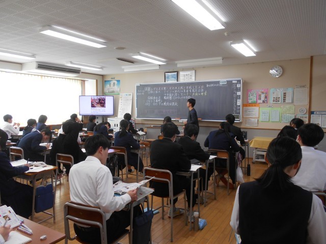 技術・家庭(家庭分野)、英語、社会、数学、国語の様子です。