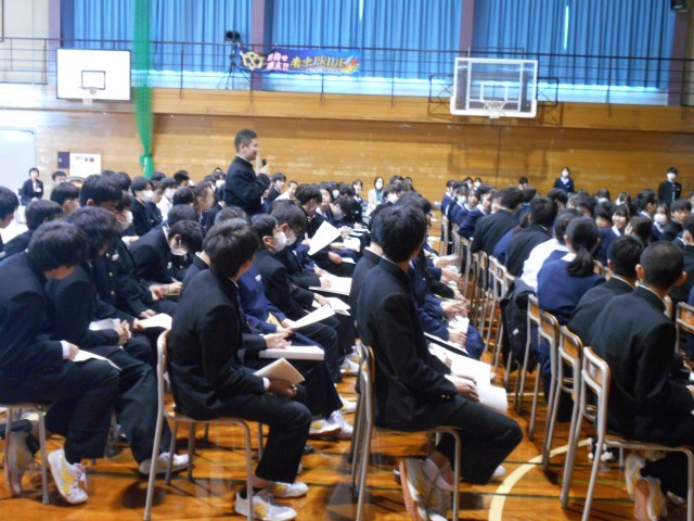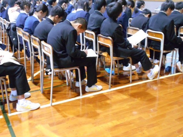 修学旅行で訪れる広島に向けて、本日は広島被爆者援護会の石原智子さんを講師にお招きし、講演会を行いました。石原さんの話を真剣に聞き、メモをとったり、質問をしたりする生徒の姿が見られました。講演を通して、平和のために私たちにできることは何かを考えることができました。