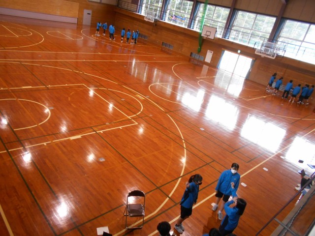 国語、保健体育の様子です。体育は、運動会の団ごとに集まっていました。
