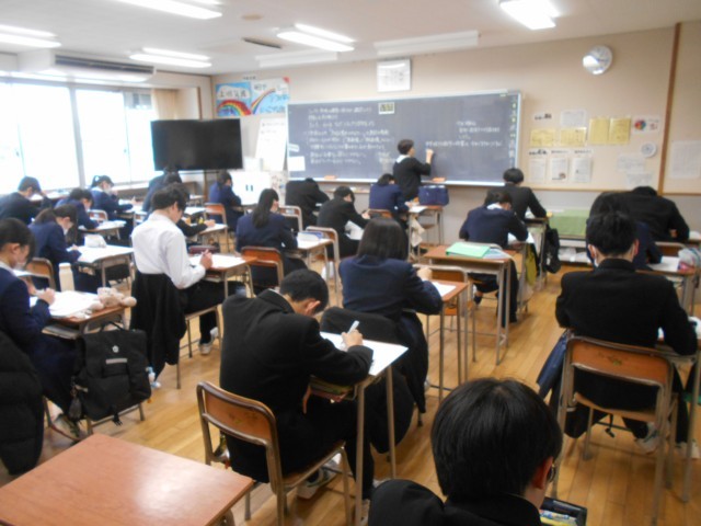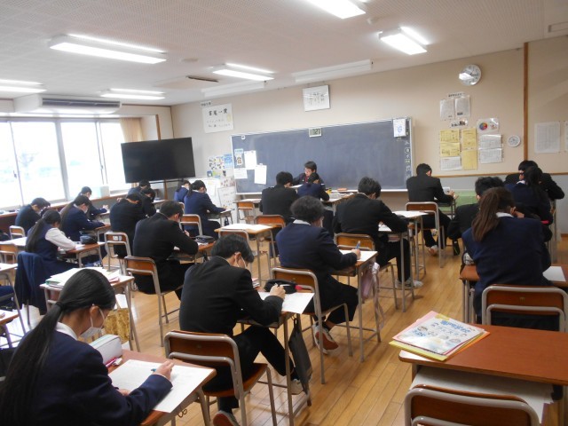 社会、英語、数学のリハーサル問題に取り組んでいます。この時間で、中学校での教科の授業は完了です。最後まで皆真剣です。