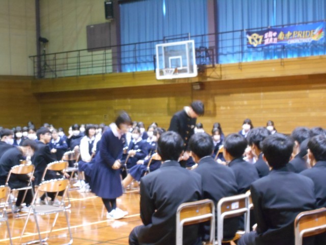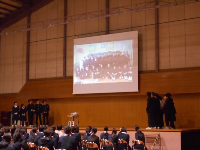 これまでお世話になった3年生の先輩に感謝の気持ちをこめて、3年生を送る会が行われました。1年生はダンスやメッセージ動画を披露し、これまでの感謝の気持ちを伝えました。2年生は行事や3年生にまつわるクイズを出題し、3年生とのこれまでの思い出を振り返りました。3年生だけでなく、全校生徒が楽しみ、温かい思い出ができました。
