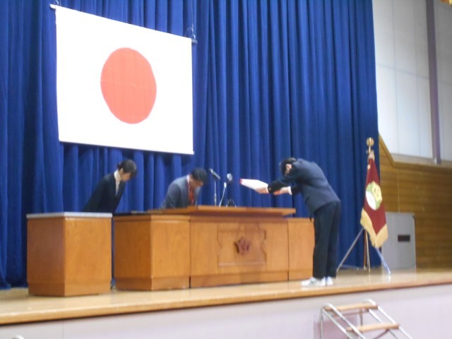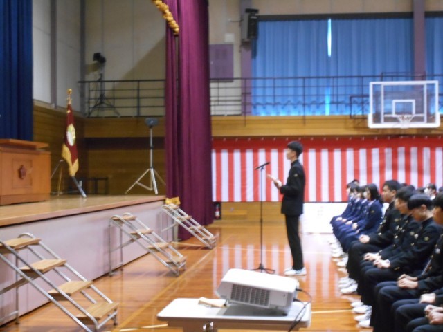 3年生は明日の卒業式に先立ち、同窓会入会式を行いました。明日の卒業をもって、南部中学校の同窓会の一員となります。