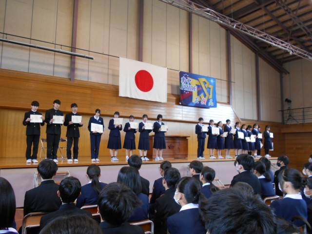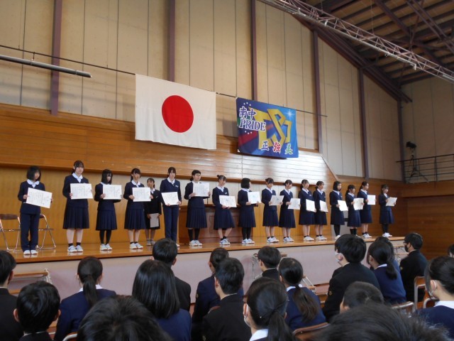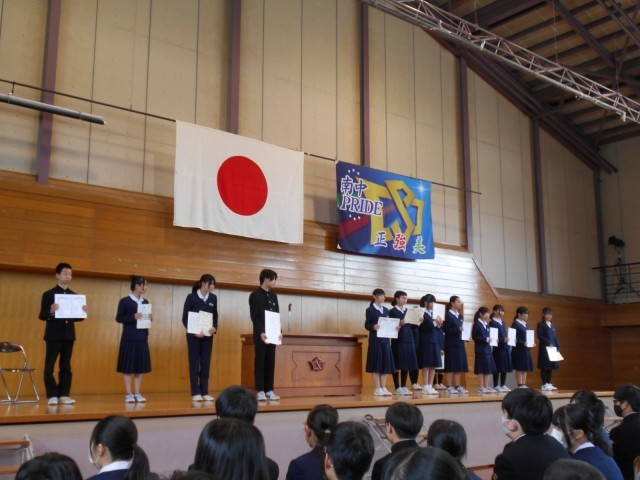 3月24日(月) 受賞報告 公開日 2025/03/24 更新日 2025/03/24 南中NEWS 3学期に部活動や書き初め等で優秀な成績を収めた皆さんの受賞報告がありました。今年度、部活動や作品制作等、様々なことに精一杯取り組みました。 +1