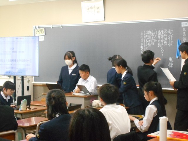先週の委員会を受けて、各学級で学級討議を行いました。