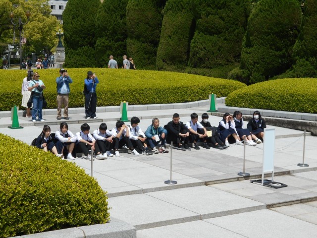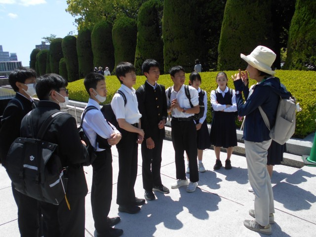 グループに分かれて、語り部さんとともに平和記念公園内を巡りました。語り部さんの話を真剣に聞き、メモをとったり、質問したりしながら戦争・平和について思いを馳せる時間になりました。