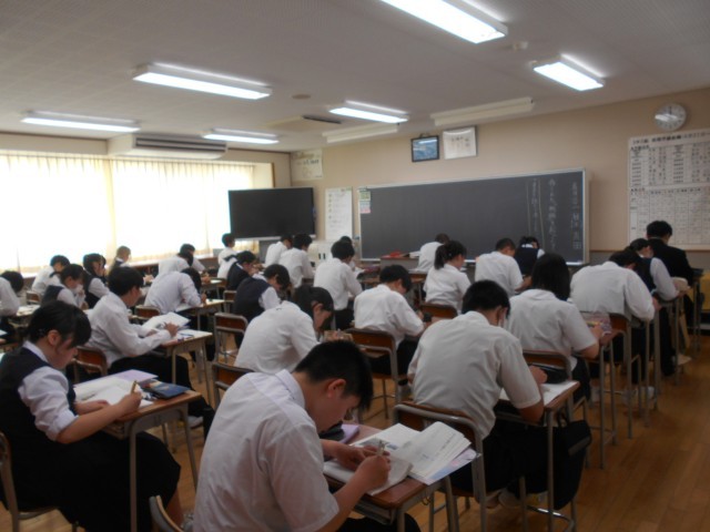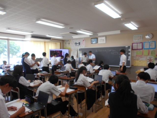 英語、数学、国語の様子です。英語は、紹介したい日本のものを自分で決めて、英作文した紹介文をALTの先生に添削してもらっています。