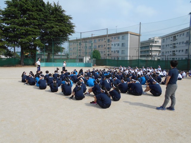 運動会に向けての団活動が始まりました。暑い中の活動でしたが、どの団も団リーダーの指示の下、元気に活動していました。