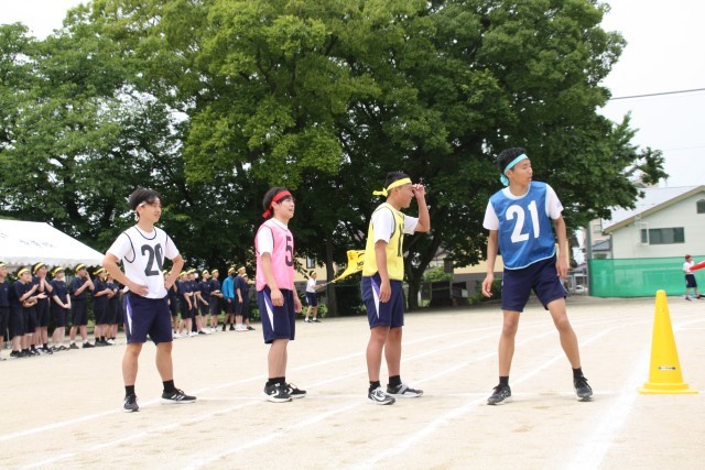 5月29日(木) 運動会 選手制種目 総合リレー 公開日 2025/05/29 更新日 2025/05/29 南中NEWS 運動会の最終種目となる、総合リレーです。各団の精鋭たちがこのレースに挑みました。精一杯走りぬいた選手に温かい声援や拍手が送られました。【結果】1位:青龍団、2位:黃鷹団、3位:白虎団、4位:赤鳳団 +1