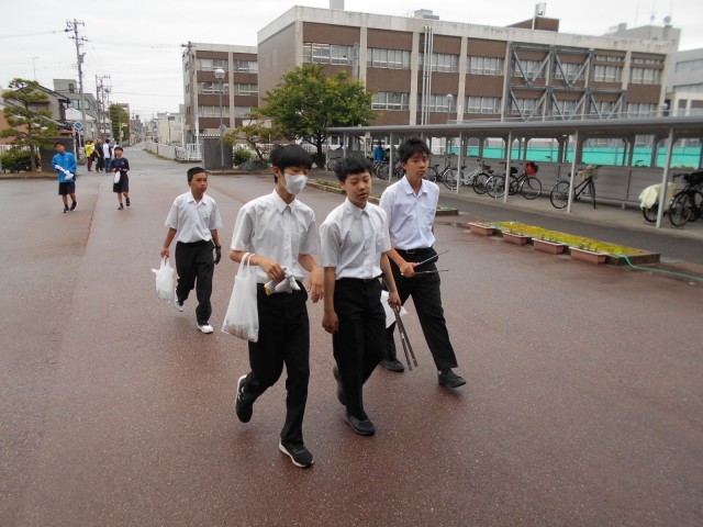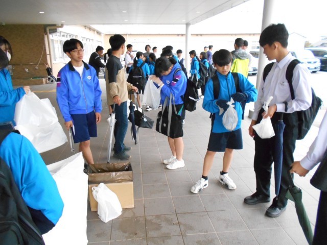 今年度も南部中学校の伝統である清掃ボランティア活動が行われました。生徒は普段登下校している通学路をきれいにしようと丁寧にゴミを拾い、すがすがしい顔で登校して来ました。小雨の中での活動でしたが、南中生のよさが輝く充実した活動になりました。