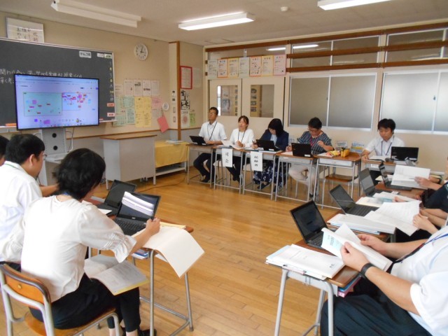 午後からの研修会の様子です。授業を振り返って、南部中学校の教育活動のよりいっそうの充実に向けて研修を深めました。
