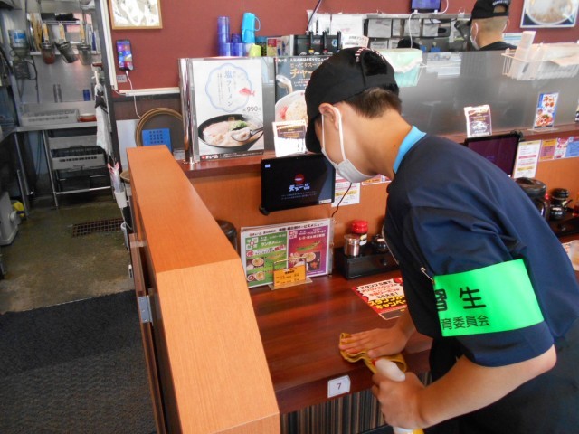 元気よく接客してくれました。お客様の使った机の片付けをてきぱきと行っていました。
