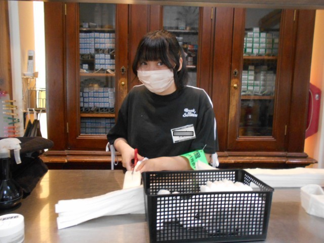 お客様が読む雑誌の手入れをしたり、コットンを切ったりしていました。