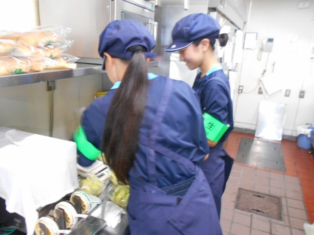 キッチンの中で、お客様に提供する商品の準備をしています。