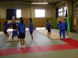 女子保健体育の授業は、マット運動で、倒立の練習をグループごとに進めていました。...