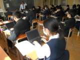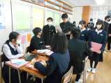 英語の授業では、インタビューしてまとめたグラフを見せながら、班ごとに発表をしま...
