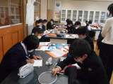 NTの時間を利用して、修学旅行で広島を訪れた際に歌う「折り鶴」の練習を進めてい...