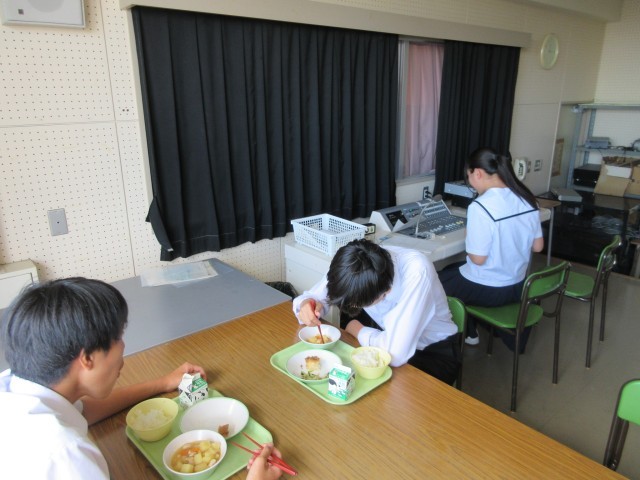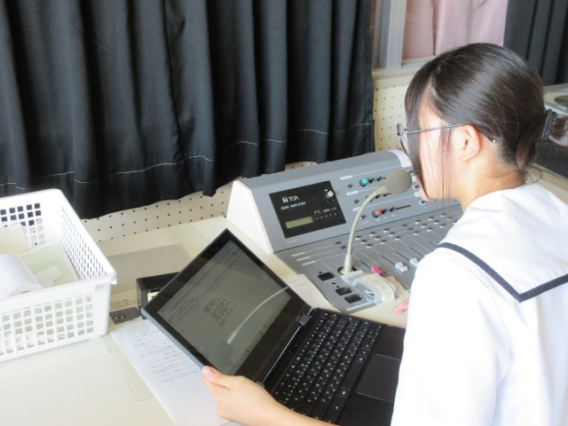 エアコンがなく、大きな扇風機がうなり声をあげている放送室ですが、生徒会や委員会のお知らせ、北中ニュースなど、「熱く」伝えていました。