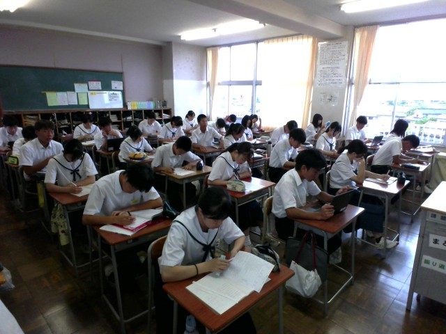 朝活動の様子です。生徒たちは、短い時間ですが、課題を進めたり読書をしたりと有意義に過ごしていました。