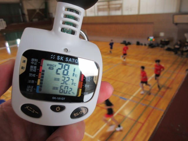 体育館は午後2時で、WBGT(暑さ指数)28.1度です。