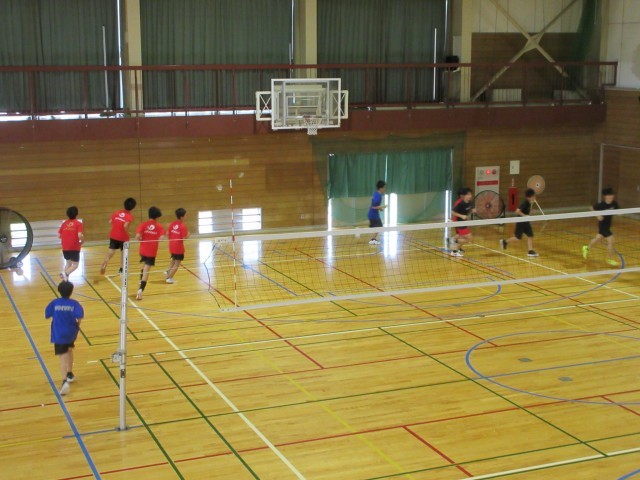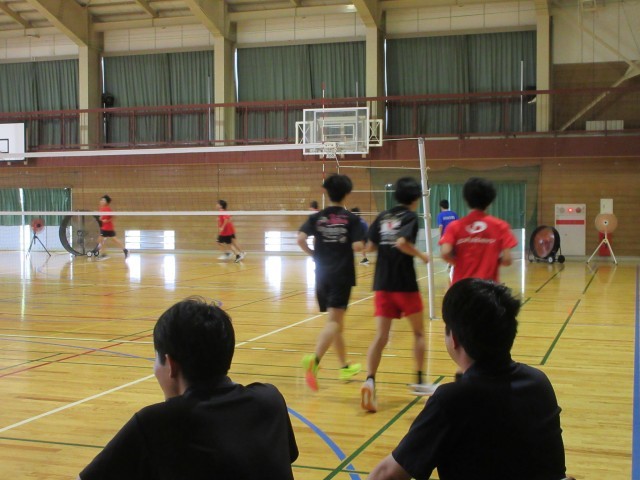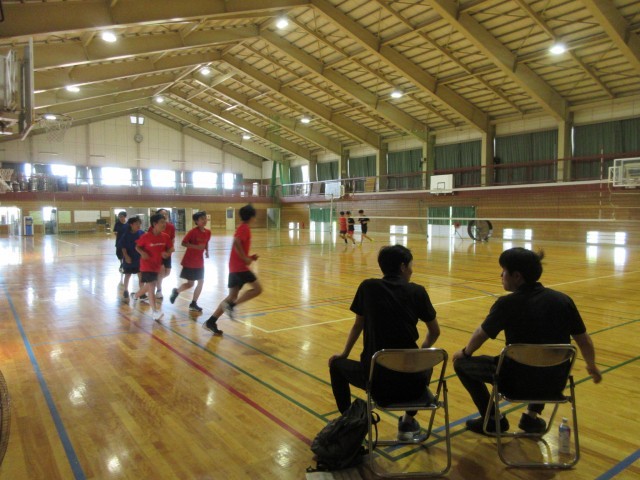 男子バレーボール部の様子です。顧問教諭が生徒の状況を確認しながら活動しています。