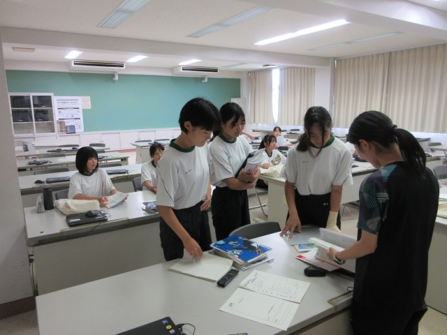 コンピュータ室では、女子ソフトテニス部員の夏休みの宿題進捗状況を、顧問が確認していました。