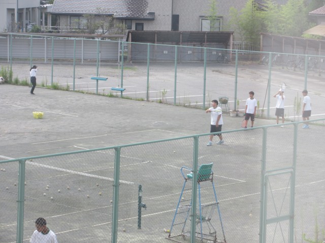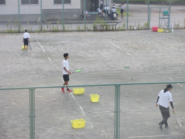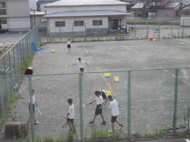 試合が近いため、ソフトテニス部は特別に7時15分から練習しています。